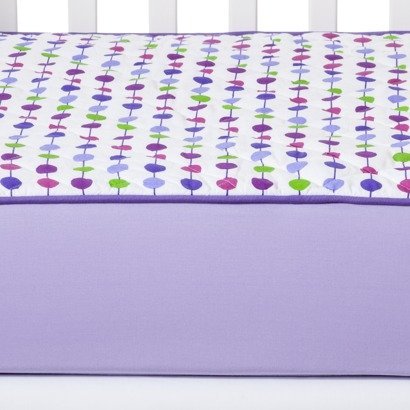 Bacati Botanical Sanctuary Purple Quilted Crib Fitted Sheet comes with Pearl String Pattern on top quilted with Polly fill.;Accentuated with bright purple cording with purple gusset.;It fits all standard crib mattresses.;It has 100% cotton percale fabric, Polly fill insert.;Measures: 52 x 27.5 x 7. Machine Washable and Gets softer with every wash.
