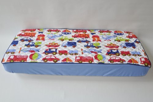 Multicolor transportation printed cotton percale fabric Quilted Top crib fitted sheet;features transportation icons in multicolor, every boys dream;Fits all regular USA standard crib mattresses, Ideal for transition kids in toddler bed;100% cotton shell with poly fill provides extra cushiony comfort. No need of mattress pads;Machine Washable. Cotton is a green fabric as it is renewable resource & biodegradable. Cotton is breathable making it more comfortable in extreme climates. Cotton is inherently soft delicate on skin of babies, durable & user friendly. Cottons gentle quality makes it appropriate for people with very sensitive skin or skin allergies. Gets softer softer wwith every wash