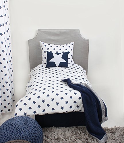 Bacati Stars Muslin 3 Piece Toddler Bedding Sheet Set, Navy by Bacati