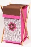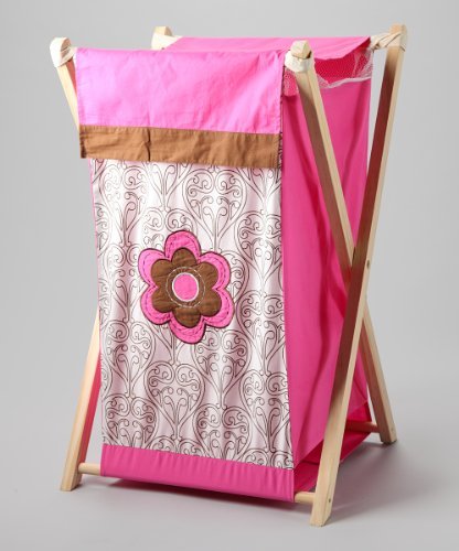 Damask Pink/Chocolate Hamper made with fabrics to match the collection;A removable mesh bag insert makes trips to the laundry room effortless.;A wood frame keeps baby's laundry organized and out of view.;Wooden Stand folds flat for space-saving storage;It coordinates with the Bacati Damask Pink/Chocolate bedding collection.