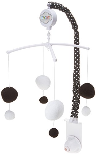 Bacati - Dots/pin Stripes Black/white Musical Mobile;Encourages eye tracking and sound perception skills;Plays Brahm's Lullaby;Sturdy clamp attaches easily and securely to crib rail;Coordinates with full Dots/pin Stripes Collection