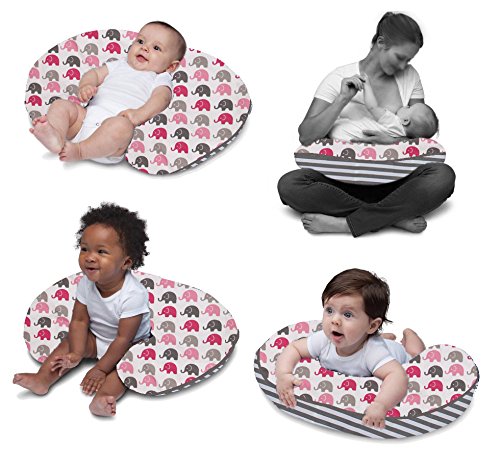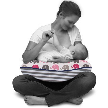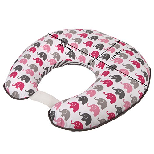 Bacati - Elephants Pink/grey Nursing Pillow;100 % Cotton;Machine Washable;No Gift Wrap