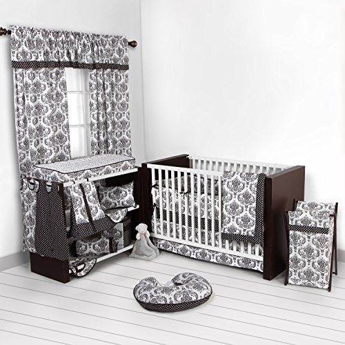 Bacati - Classic Damask White/black Nursing Pillow;100% Cotton Peracle Fabric;Machine Washable;Makes a great pregnancy pillow. Creates a sense of well-being for parents and child.;Includes removable zippered cover and poly-filled insert pillow
