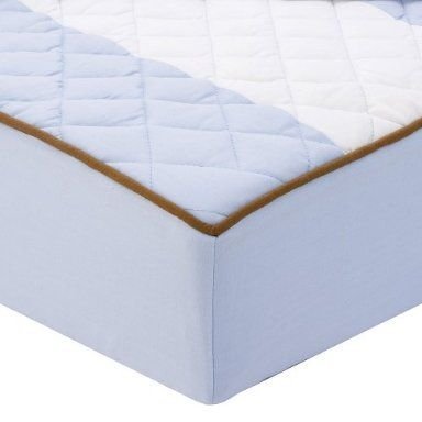 Add an element of comfortable style to your baby's new room with the Bacati Metro Blue/White/Chocolate Changing Pad Cover. This Changing Table Pad features a Quilted top with soft fill which offers supreme cushioning for baby with chocolate thread quilting and piping. 100% cotton. Machine washable. This Diaper Changing Pad coordinates with the rest of the Bacati Metro Blue/White/Chocolate collection.