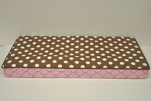 Ensure that your little one stays comfortable and secure with Bacati Butterflies/Lady Bug pink/chocolate Changing Pad Cover. Classic White/chocolate Dots printed fabric quilted with poly fill to support and cushion your child while you change her diaper. Accentuated with bright chording with quadrafoile printed in pinks as gusset. Has slits on the side for the changing pad safety straps. The changing pad cover fits all regular changing pads up to 32'L x 16'W with a 6' gusset. 100% cotton shell with poly fill. It is machine washable and gets softer with every wash. It coordinates well with other pieces in the Butterflies/Lady Bug pink/choc Collection. Cotton fabrics are excellent with newborn babies and does not give skin rashes like other polycotton or polyester fabrics give. Cotton is a green fabric as it is renewable resource & biodegradable. Cotton is breathable making it more comfortable in extreme climates. Cotton is inherently soft delicate on skin of babies, durable & user friendly. Cottons gentle quality makes it appropriate for Babies with very sensitive skin or skin allergies.