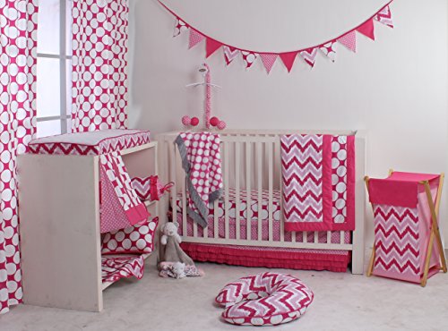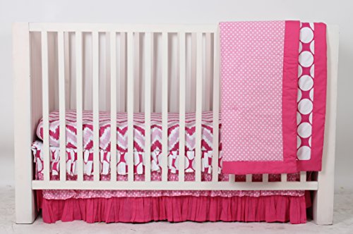 - Bacati Mix and Match Dots 3 Layer Ruffled Crib Skirt, Pink