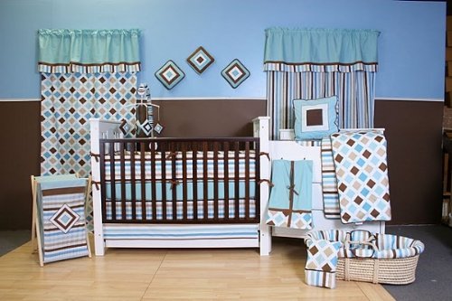 Mod Dia/Strps Aqua 6pc Crib Set by Bacati