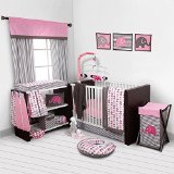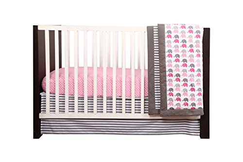 - Elephants Pink/Grey 10 pc Crib Set Bumperfree