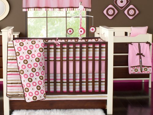 • Mod Dots/str Pink/Choc 10 pc Crib Set