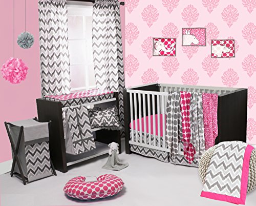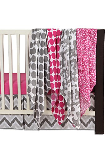 - Bacati - Pink/grey Ikat Chevron Muslin 10 Pc Crib Set Without Bumper Pad