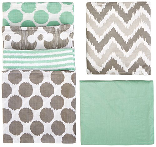 Bacati Ikat Mint/Grey 6 Pc Crib Set with 4 Muslin Blankets;100 % Cotton;Machine Washable and gets softer with every wash;No Gift Wrap
