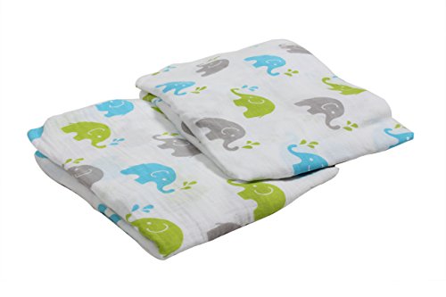 Bacati Elephants 2 pc Muslin Crib Sheets;100 % Cotton, Includes 2 identical crib fitted muslin fabric sheets;Machine Washable and gets softer with every wash;Size: 52 x 27.5 x 7;Cordinates with Bacati Elephants Aqua/Lime/Grey Bedding Collection