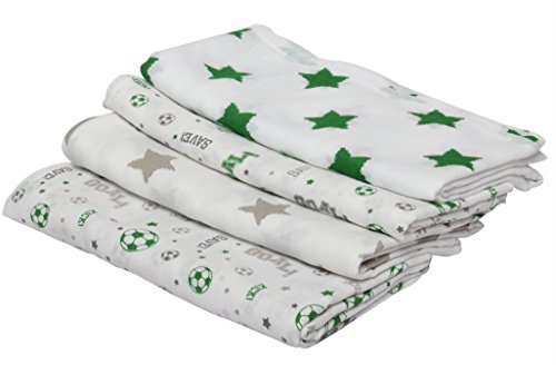 Bacati Soccer Muslin Set of 4 Swaddling Blankets, Green/Grey