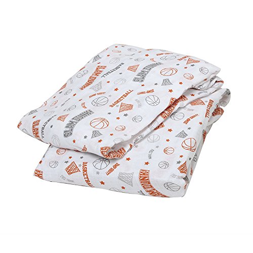 Bacati Muslin 2 Piece Crib Sheets, Basketball/Orange/Grey