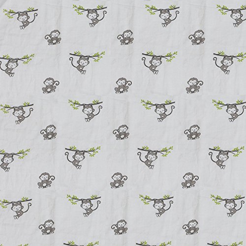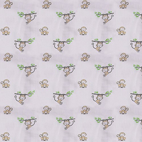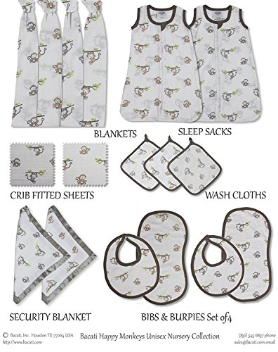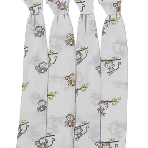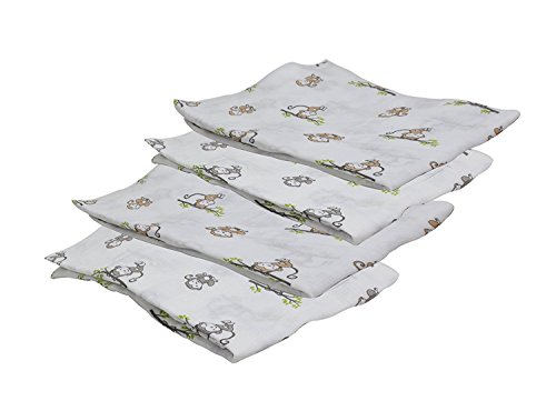 Bacati Set of 4 Happy Monkeys Muslin Swaddling Blankets, Beige/Grey