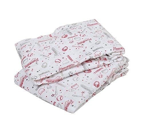 Color:Baseball/Red/Grey Wrap your baby in warmth with this super soft Bacati Sports 2 pcs Muslin Crib Sheet, Size: 52 x 27.5 x 7'. It is made with 100% cotton muslin fabric. It is machine washable and gets softer with every wash. It coordinates with the rest of Bacati Sports Bedding Collection. See the entire rest of Bacati Sports Collection for endless Mix N match possibilities. Cotton is a green fabric as it is renewable resource & biodegradable. Cotton is breathable making it more comfortable in extreme climates. Cotton is inherently soft delicate on skin of babies, durable & user friendly. Cottons gentle quality makes it appropriate for Babies with very sensitive skin or skin allergies.