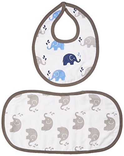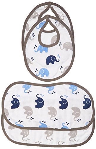 - Bacati Elephants Muslin 4 Piece Set of Burpies or Bibs, Blue/Grey