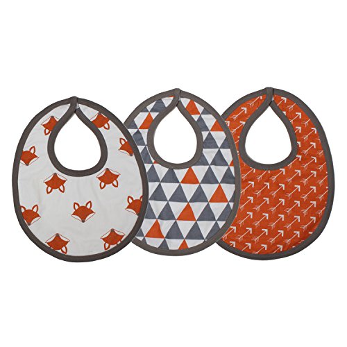 - Bacati Playful Foxs 3 Piece Set of Bibs, Orange/Grey