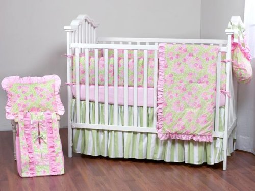 ベッドのバラピンク/グリーンゆりかごバスケット、マットレスシーツ、バンパーガード寝具と掛け布団