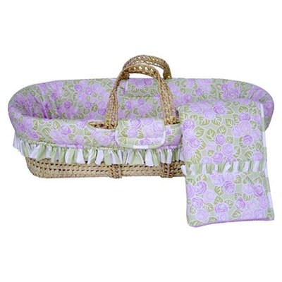Lilac/Green Moses Basket;Includes fitted bumper guard, comforter, removable fitted sheet, and standard mattress;Machine Washable