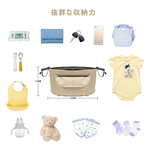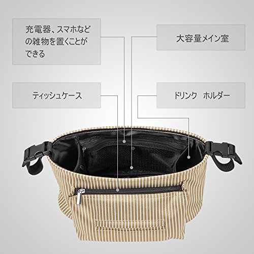 Bacoer(バコーア)ベビーカー用バッグ ベビーカー ドリンク ホルダー 多機能小物入れ 収納 スマホ ポケット ティッシュケース付き ベージュ