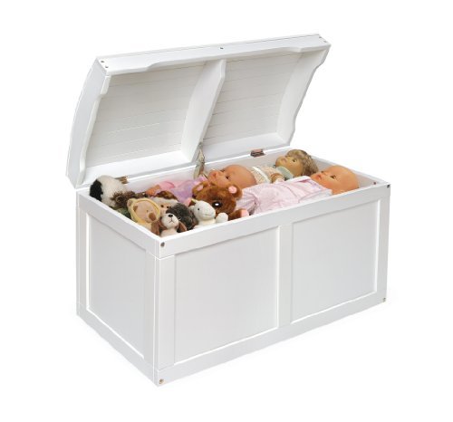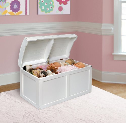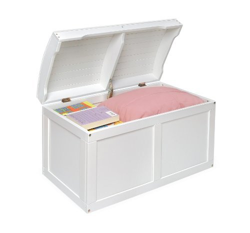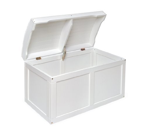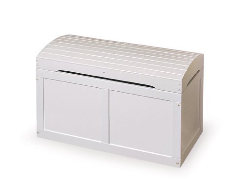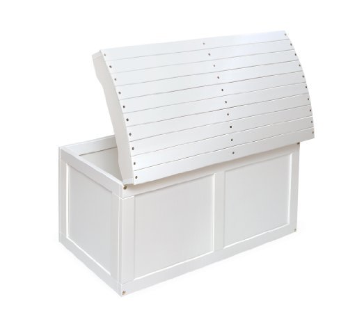 Store beloved toys and stuffed animals in the White Barrel Top Toy Chest. The attractive styling will remind kids of a treasure chest, making it more fun to tidy up the room. (Well, we can dream!) The safety support hinge is made from quality hardware and secures the lid in an open position, so a child can't be trapped. Made of wood, wood composites, and veneers. Wipe clean as needed. Imported. 18Hx35Wx20D".