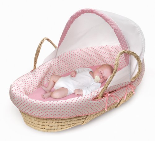 - Badger Basket Company Natural Moses Basket with Fabric Canopy, Pink Polka Dot