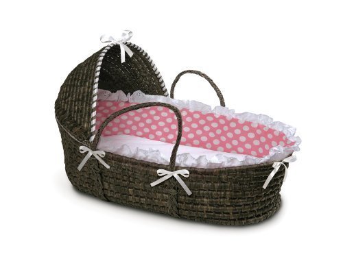 - Badger Basket Moses Basket with Polka Dot Hood and Bedding, Espresso/Pink