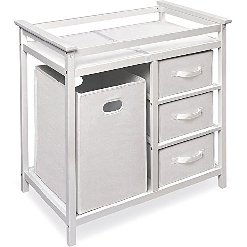 Modern White Changing Table with Hamper and Three Baskets by Badger Basket