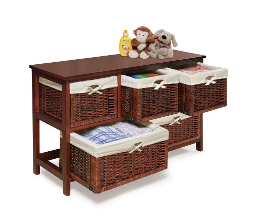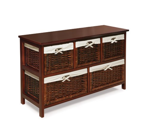 - Badger Basket Five Basket Storage Unit with Wicker Baskets, Cherry
