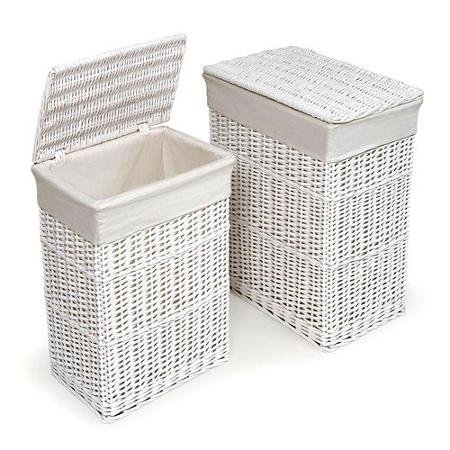 Hampers nest inside each other for storage;Hampers measure 18 W x 13 L x 22 H and 15 W x 10.5 L x 18.5 H and each includes a fabric liner;Wipe and spot clean hampers as needed. Liners may be removed for machine washing (cold water, gentle cycle; air dry or tumble dry low);Slots on the sides make it easy to carry the hampers to the laundry room;Attached lid flips open for loading and unloading and won't get lost Fully assembled