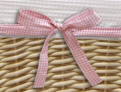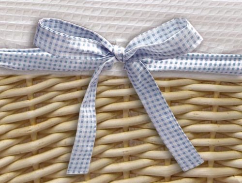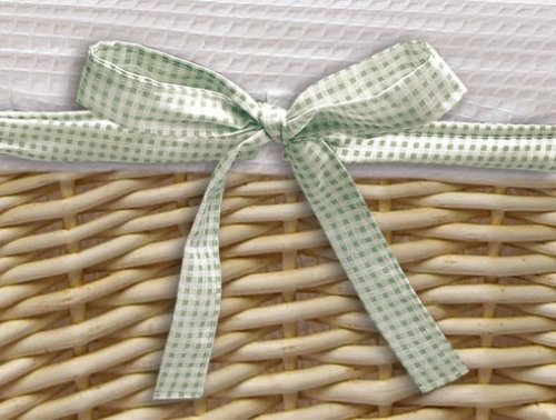 Useful basket for the nursery, closet, or anywhere;Includes fabric liner with interchangeable ribbons;Liner can be machine washed;Basket is approx. 15x15x8;Recommended Age Range birth and up