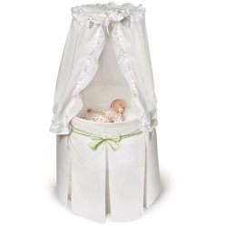 29.25L x 29.25W x 55H;Mattress Dimensions: 1 Thick;Includes: Bassinet, Mattress, Liner/Skirt, Canopy, Fitted Sheet;Fabric Color/Content: 80% Polyester/20% Cotton;Machine Washable