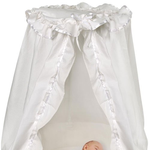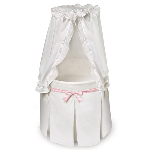 White Empress Round Baby Bassinet with Gingham Belts by Badger Basket