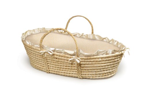 このモーゼバスケットは、自宅でもお友達の家に遊びに行く時でも、赤ちゃんの睡眠を安全にキープします。 大きさは77.5cmx43.3cmx22.9cmです。かごの深さは15.2cmです。 ソフトバンパーと裏地は白いフリルのトリムが付いている甘いピンクのギンガムチェックです。80%ポリエステル、20%コットン生地で作られています。 裏地は取り外し可能で洗濯機洗い可能です。 赤ちゃんが6.8kgになるまで、腕立てが出来るまで、または寝がえりができるまで使用可能です。 バスケットは常にしっかりとした平らな面の上に置いてください。暖炉や火気の近くに置かないでください。 赤ちゃんが大きくなったら、ペット用やタオルを保管してご利用ください。