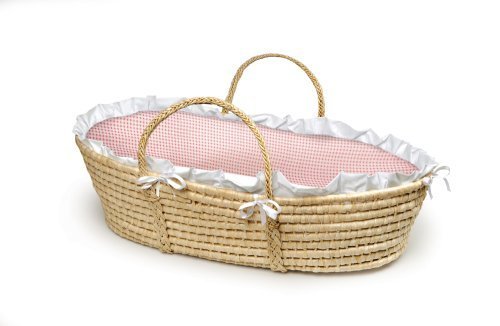Badger Basket Company Natural Baby Moses Basket - Pink Gingham Bedding by Badger Basket Company [並行輸入品]