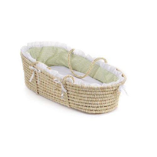 Badger Basket Natural Moses Basket with Gingham Bedding, Sage by Badger Basket [並行輸入品]