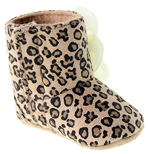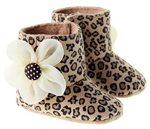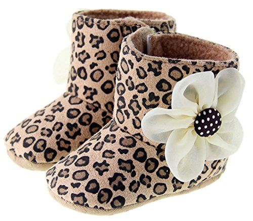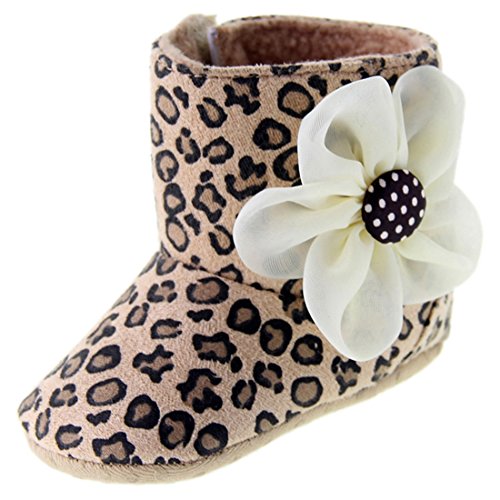 (ダンティヤ)Dantiya ベビー キッズ 新生児 秋冬 シューズ 可愛い豹柄 花飾り 靴 ファーストシューズ (13cm)