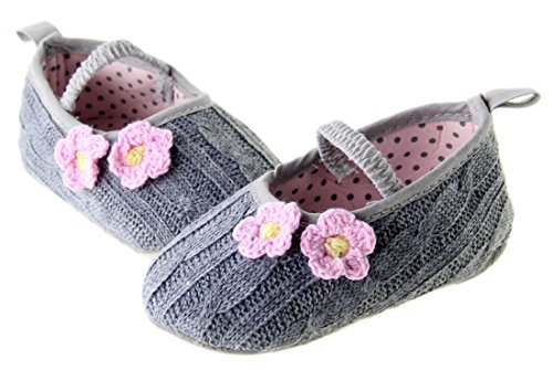 (ダンティヤ)Dantiya ベビー キッズ 新生児 秋冬 シューズ ニット 花飾り 靴 ファーストシューズ (13cm)