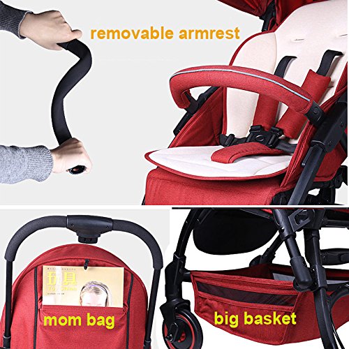 1:Our strollers are with higher ground clearance than others, which can protect you baby from the air pollution and can have a broad view.