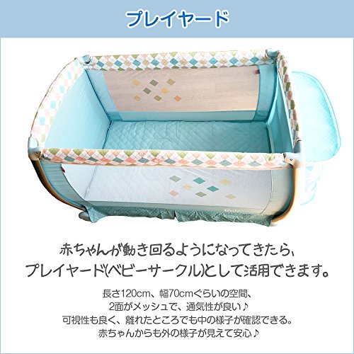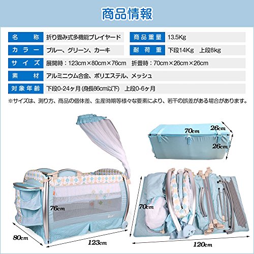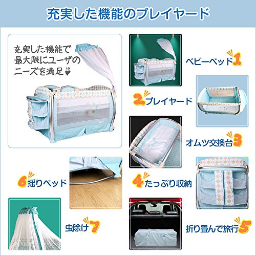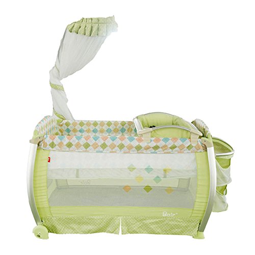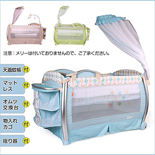プレイヤード 折りたたみベビーベッド 充実した機能 アルミニウム合金素材 Bair ベビーサークル 天蓋蚊帳等5大付属品付 3色可選 (グリーン)