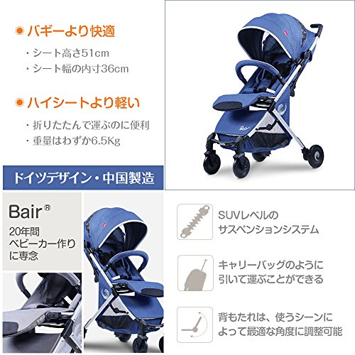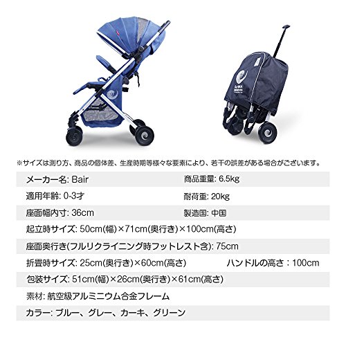 ベビーカー コンパクト アルミニウム合金素材 Bair リクライニング可能 自立可能 0~36ヶ月用 SUVレベルサスペンション (グレー)