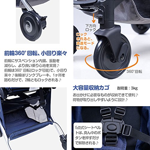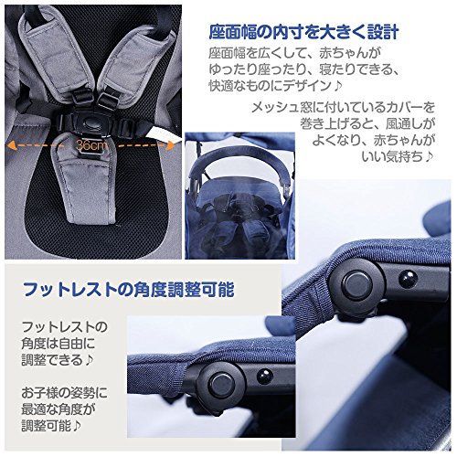 - キャリーバッグのように引いて運べるベビーカー、折りたたみ後コンパクト♪バギーより快適、ハイシートより軽い 背もたれ105~175度調節可能、座る時も寝る時も気持ちよくお出かけOK♪
