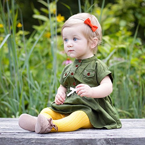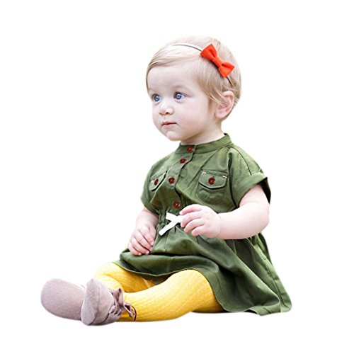 新生児乳児赤ちゃん服、balakieガールソリッドショートスリーブポケットプリンセスドレス服 3T グリーン BK-15989