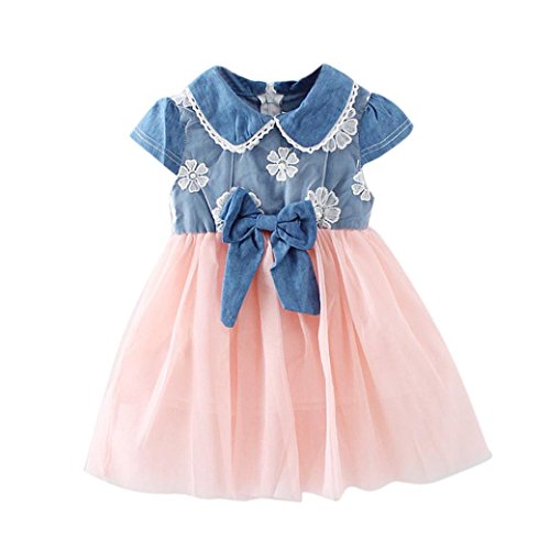 チュールベストパーティードレス、balakie蝶結びカジュアルレースドレスデニムスプライスLayeredドレス 18M ピンク BK-15989