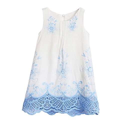 ベスト刺繍ドレス、balakieベビーガールズプリンセスドレス半袖刺繍ドレス 4T ブルー BK-15989