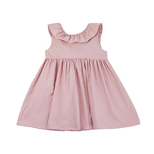 プリーツホルタードレス、balakieガールズフリルリボン無地カジュアルドレス 4T ピンク BK-15989