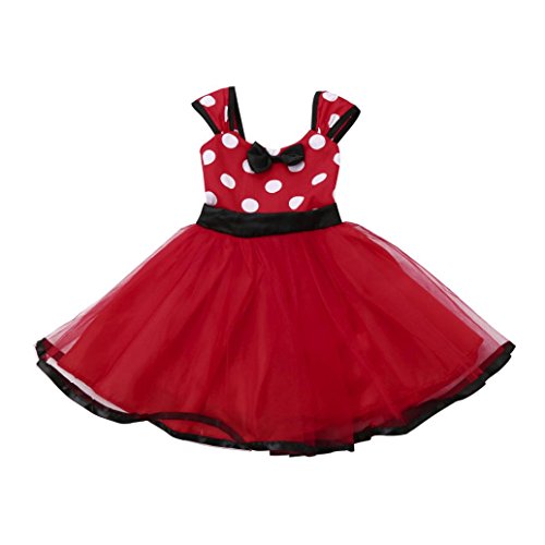 チュチュプリンセスドレス、波balakie点線Bowガールズネットワークポンポンスカートドレス 18M レッド BK-15989