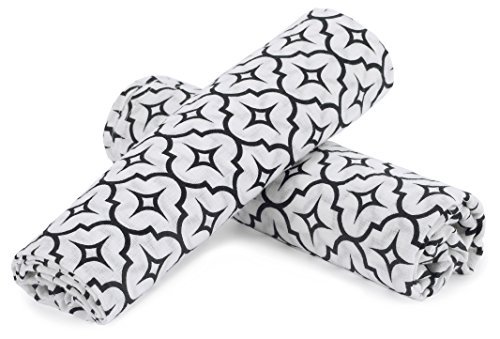 More than 60% larger than most receiving blankets advertised as large, at 44 by 44 inches this set of two blankets is sure to find unending uses in and outside your home;100% cotton muslin gauze is the perfect fabric - lightweight but durable and super soft against your baby's skin; good reason for it to have surged in popularity with moms seeking only the softest;Large square dimensions and lightweight open weave soft fabric make it perfect for swaddling;Or use as a nursing cover, stroller blanket, burp cloth, changing pad, or a host of other needs that will arise with a new baby in the house;Beautiful black on white lattice design will make you proud to bring it anywhere