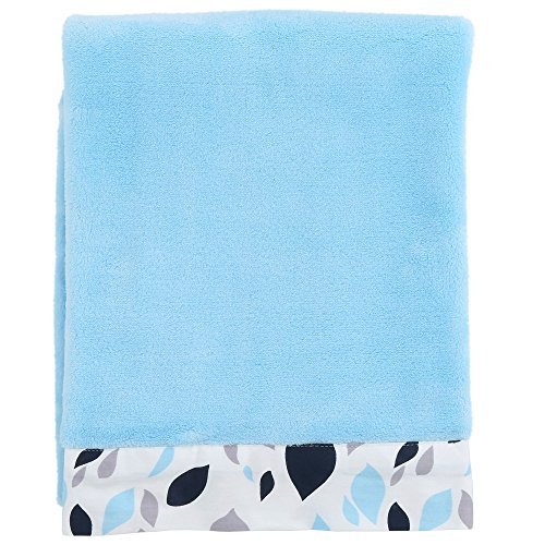 Generously sized super soft and lightweight baby blanket will find uses throughout the house;A beautiful 3 inch 100% cotton sateen border features a leaves print in navy blue, aqua and gray;Main body of blanket is a luxurious double-sided fleece that will provide cozy lightweight warmth;Perfectly sized at 40 by 30 inches and constructed to last for years;Machine wash and dry